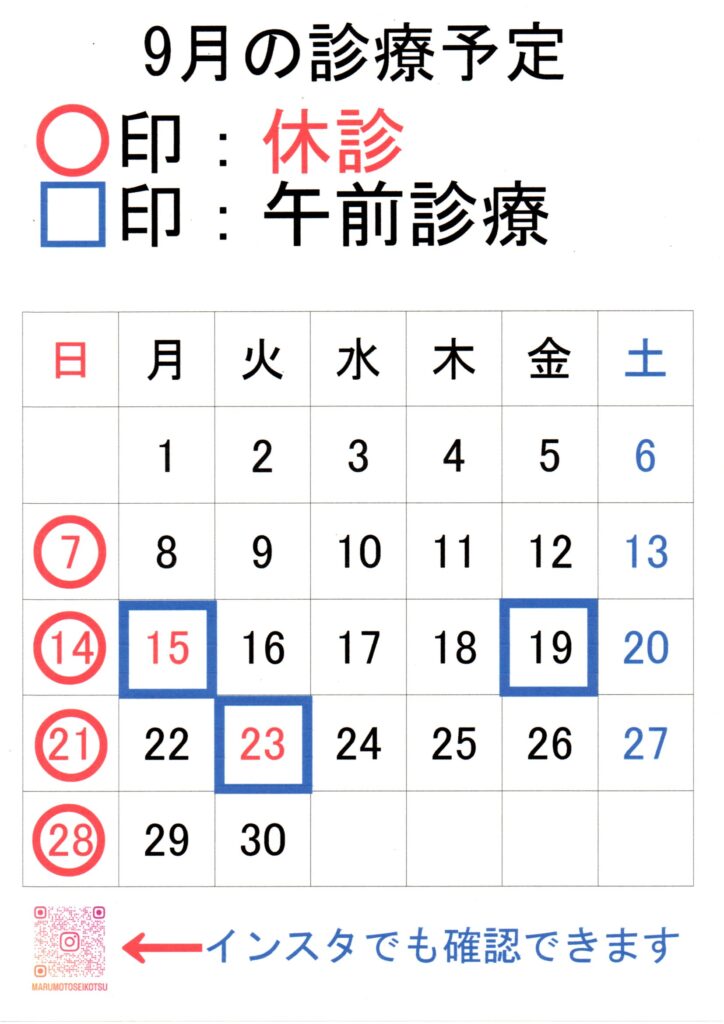 令和7年9月の予定(追記:9/19の受付時間変更)